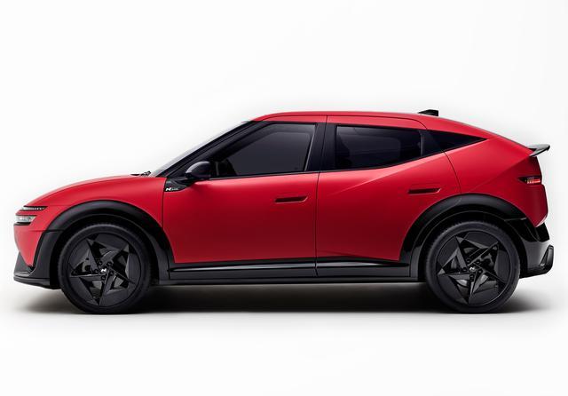 车身侧面使用了轿跑式的造型风格,整体造型轮廓很紧凑,A柱为隐藏式风格,车窗后部线条上扬,和后门上的筋线相呼应。车门把手为半隐藏式,轮眉为黑色涂装,和黑色的下包围相呼应。车身尺寸方面,车辆长宽高分别为4155/1800/1505mm,轴距为2680mm。